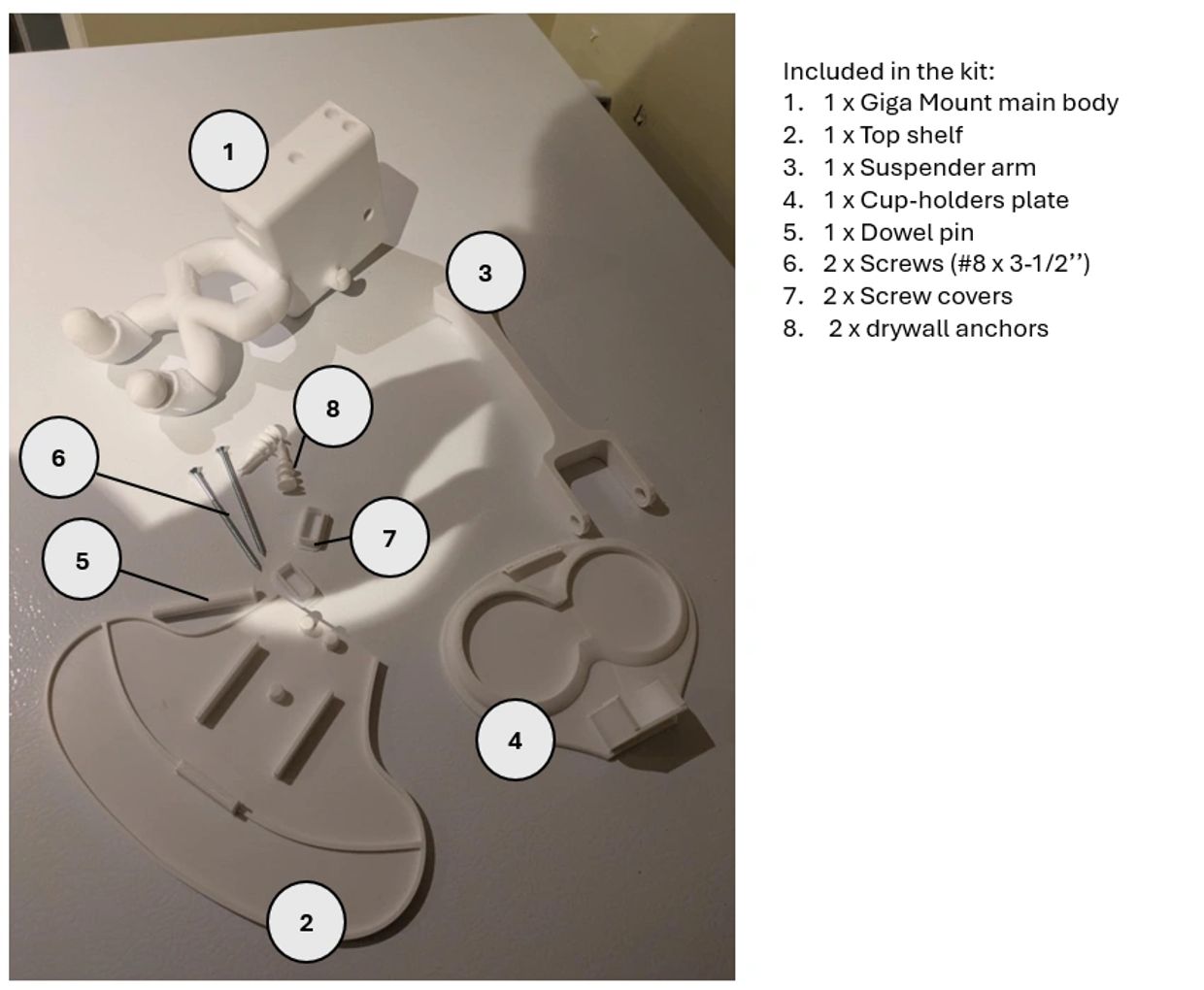 7. Place the giga mount on the wall, aligning it with the drywall anchors. There is a slight recess in the back of the mount that will fit over the anchors to help alignment.